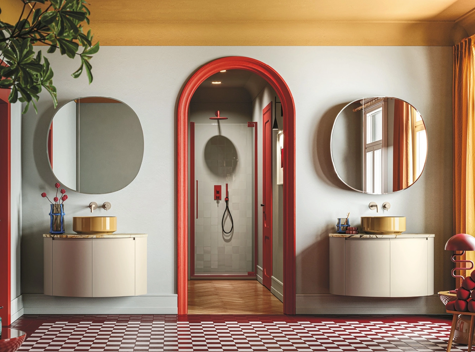 mobili bagno sospesi in laccato opaco del marchio Arbi: clicca e scopri l'arredo bagno moderno Fusion 41 per la stanza del benessere.