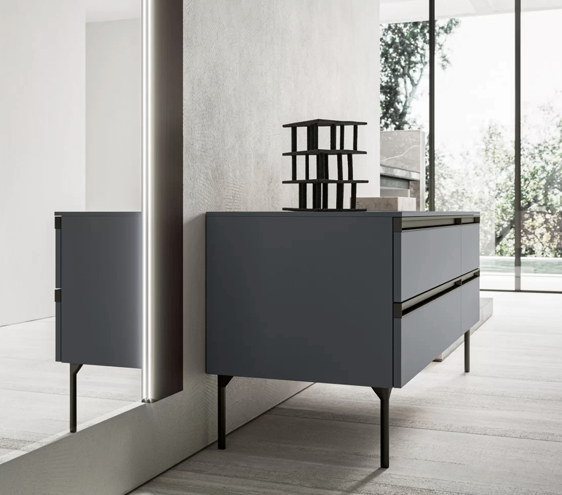 La zona notte contiene anche i Comodini: mobili per contenere strategici che consentono di ordinare piccole cose e avere a disposizione piani per appoggiare multiuso. Ottimizza i tuoi spazi scegliendo composizioni di pezzi abbinati o ricrea esteticamente gradevoli accostamenti di stile e tonalità con il catalogo di mobili ed elementi accessori per la zona notte che proponiamo, come il modello in laccato opaco mostrato in foto, anche realizzabili su misura. Comò Ego 03 di SantaLucia: contattaci e scopri di più sulle nostre composizioni e arreda la camera come l'hai sempre immaginata.