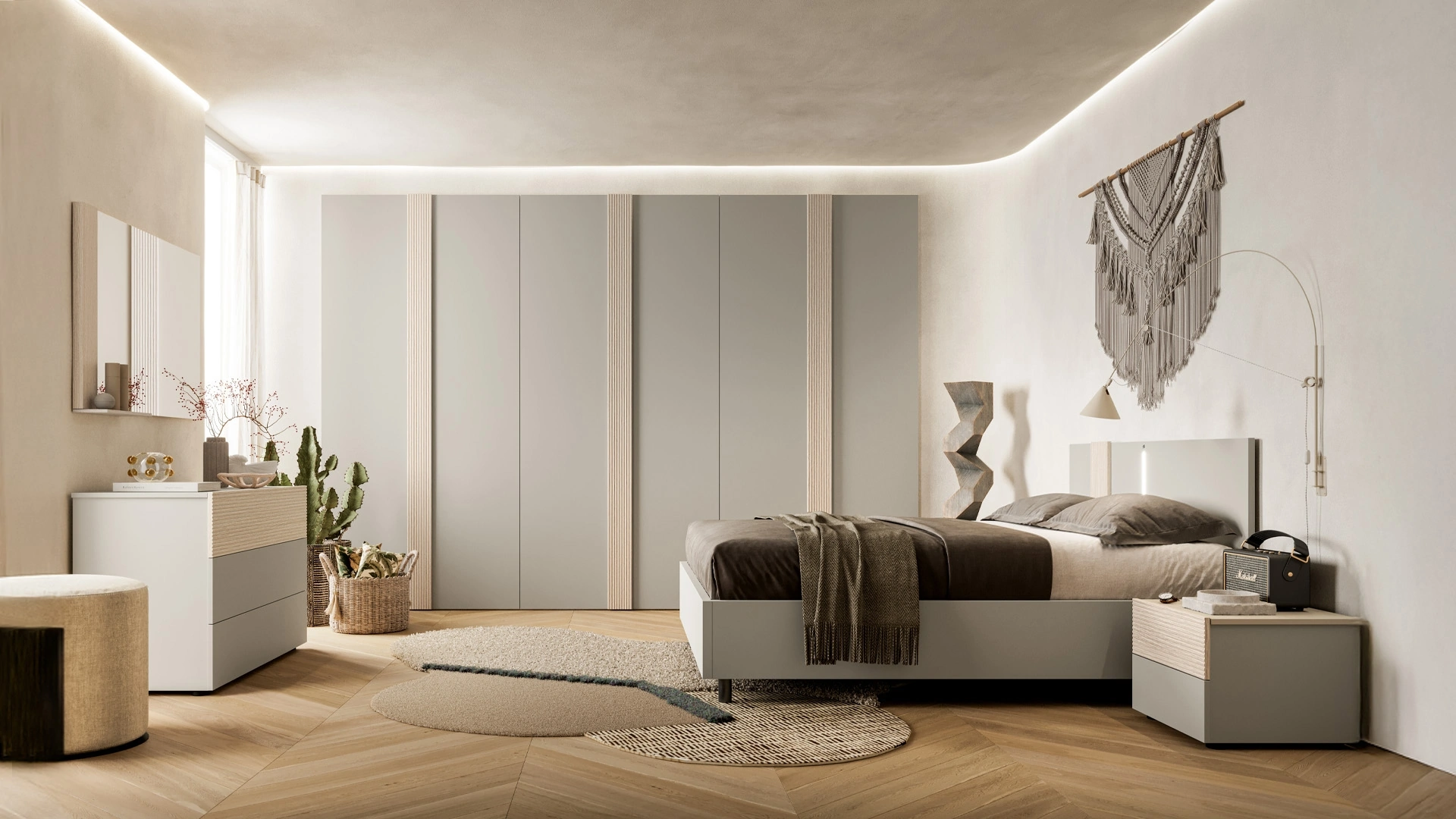 Scegli cromie e texture e realizza il tuo concept d’arredo nella camera, progettandola proprio come l'hai sempre immaginata. Se vuoi una soluzione in melaminico, il modello visibile in foto è contraddistinto da materiali pregiati e forme decise, che invitano a trascorrere un sonno completo e rigenerante. Il Letto con testiera Abro di SantaLucia crea uno spazio familiare e confortevole in ogni camera, garantendoti il riposo migliore e uno stile unico. I Letti matrimoniali con testiera della marca, leader nella produzione di Arredamento Casa per la zona del riposo, sono pensati per essere abbinati a mobili e complementi di ogni tipo, come armadi e comodini, abat jour e piantane.