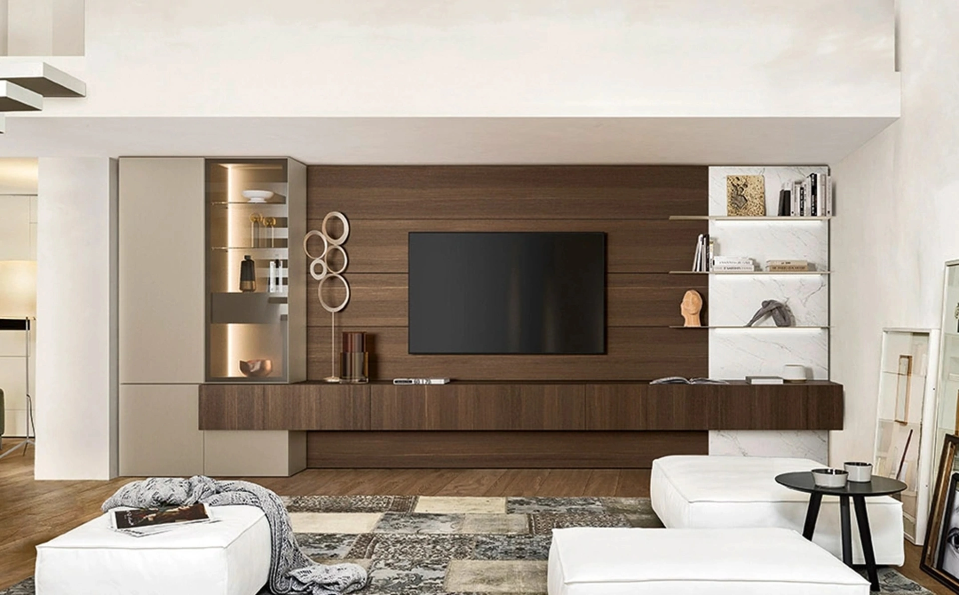 Se desideri completare un soggiorno dinamico e operativo dalle linee moderne, ecco a te la parete attrezzata Lampo 004 Sangiacomo.