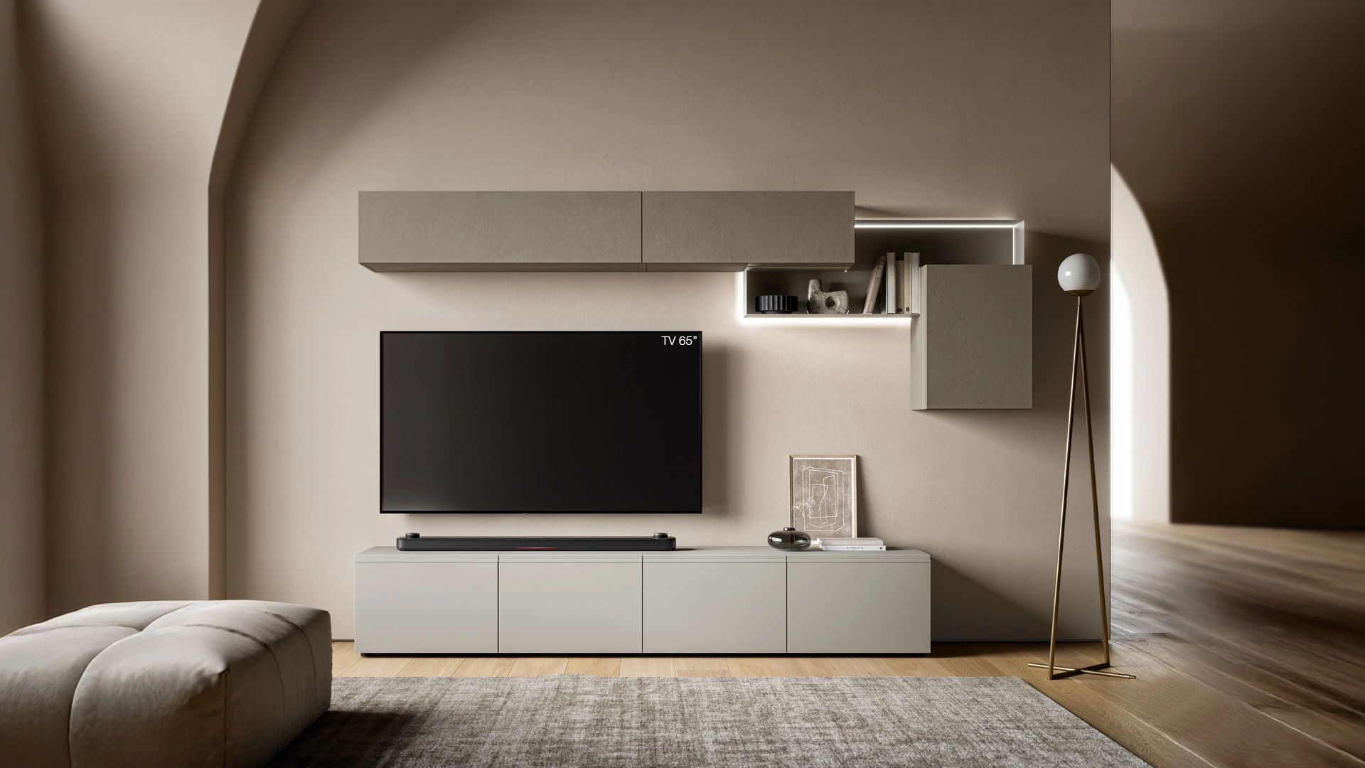 Vuoi ammobiliare un living dinamico e operativo? Ti presentiamo la parete attrezzata Pratico PTG431 SantaLucia dalle forme decise moderne.
