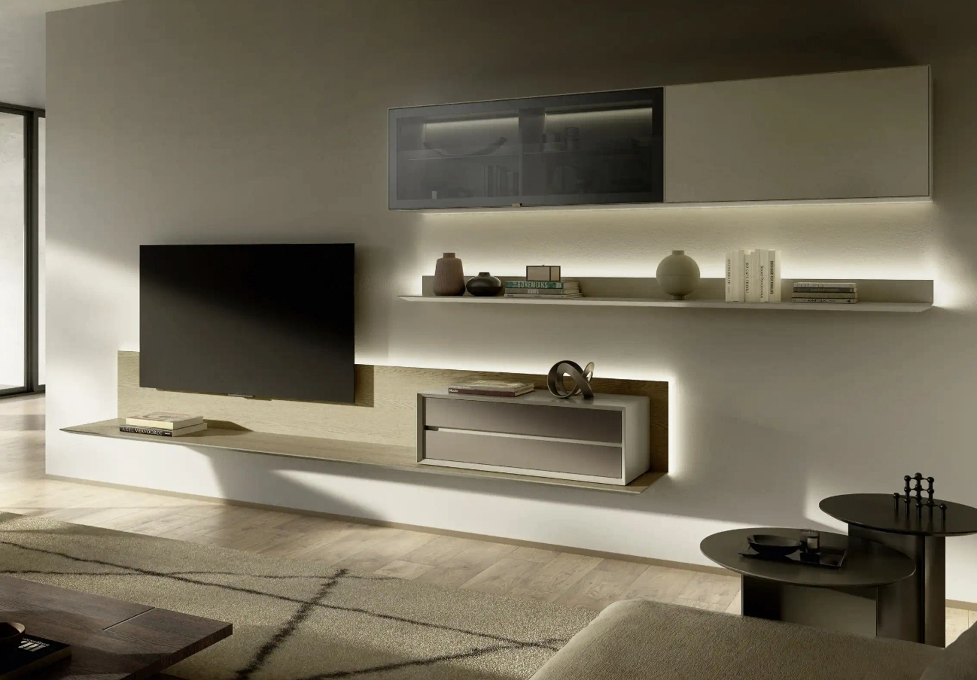 Se desideri completare un soggiorno pratico e operativo dalle linee moderne, ecco a te la parete attrezzata Domino 02 Sangiacomo.